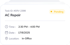 Teams log planned and ad-hoc tasks from the ground, keeping the office synced in real-time.
